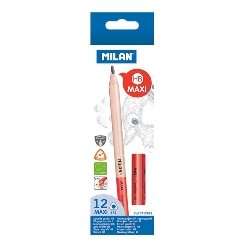 HB grafitozko MAXI arkatzak, industrian erabiltzeko aproposak. 3,5 mm-ko Ø meatzea. Forma triangeluar ergonomikoa. HB graduazioa grafitomediaren gogortasuna da, eta idazteko eta marrazteko gomendatzen da. Meatzeak marra uniformea du eta hausturarekiko erresistentea da, LPS (Lead Protection System) sistemari esker. Sistema horrek meatzea babesten du, zurarek