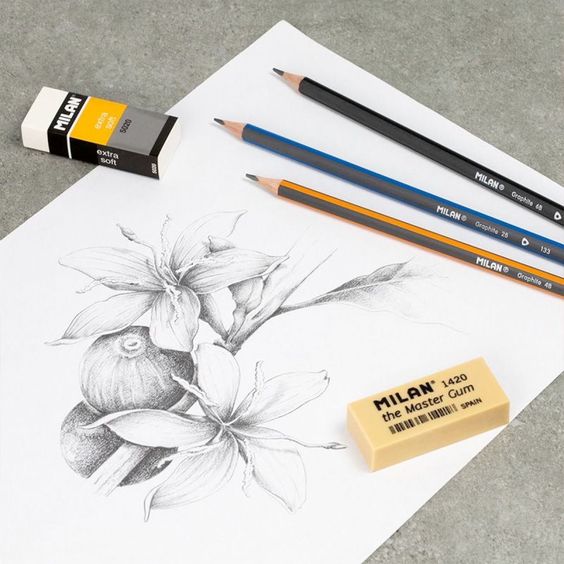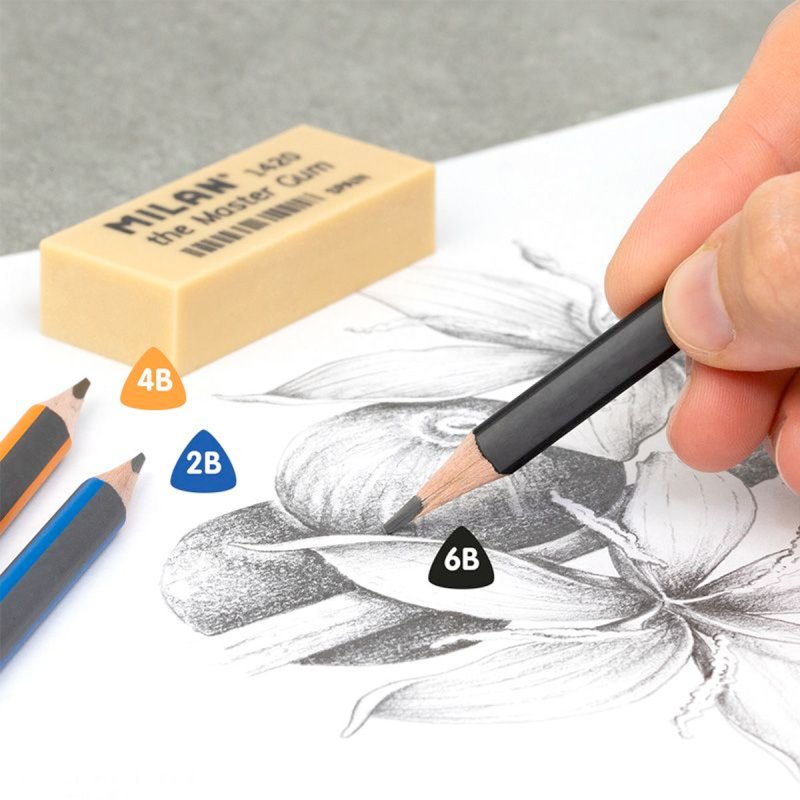 4B grafitozko arkatzak. 2,4 mm Ø. Forma triangeluar ergonomikoa. 4B graduazio-grafitoa leuna da, marrazketa artistikorako egokia. Meatzeak marra uniformea du eta hausturarekiko erresistentea da, LPS (Lead Protection System) sistemari esker. Sistema horrek meatzea babesten du, zurarekin bat egiten duelako. Landaketa iraunkorretatik datorren zura.
