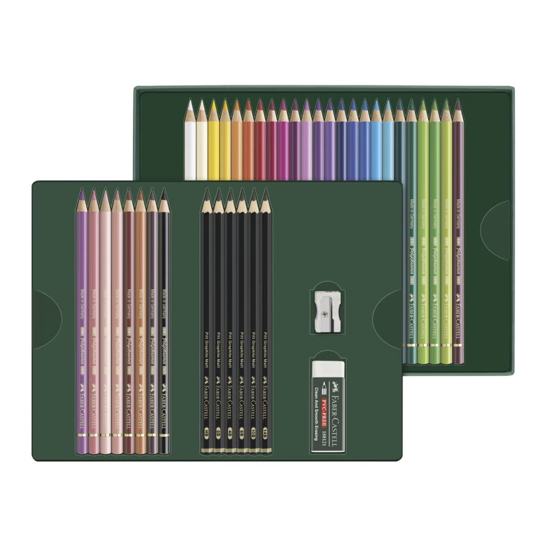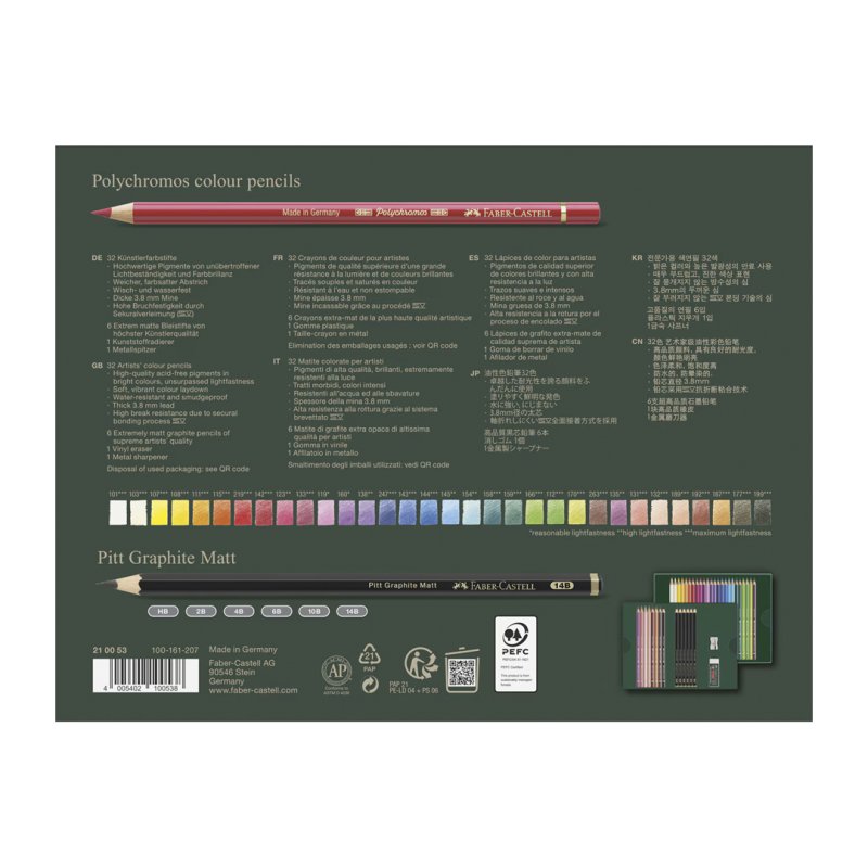 Estuche de regalo con 32 polycromos más 6 lapiceros de grafito mate Faber-Castell