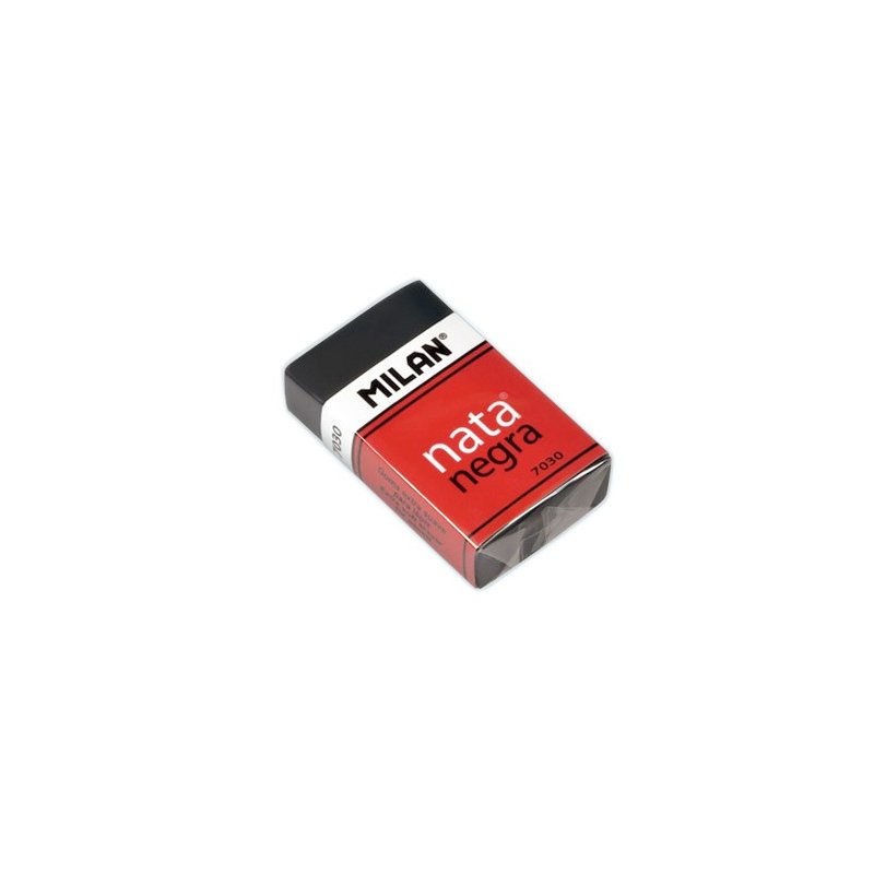 Kautxu sintetikozko goma malgua, alakatua eta bi kolorekoa, edozein gainazalen gainean arkatza ezabatzeko. Askotariko koloreak: urdina, laranja, gorria eta berdea. Gomaren neurriak: 5,6 x 1,5 x 1,2 cm. MILAN borragomak Espainian eginda daude 1918tik.