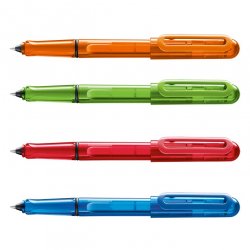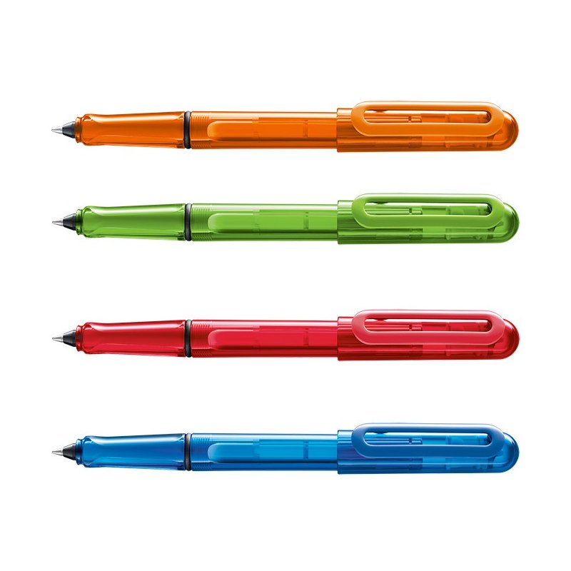 Roller con capuchón, plástico translúcido en varios colores (azul, rojo, naranja y lima), con cartucho de tinta LAMY T 11.