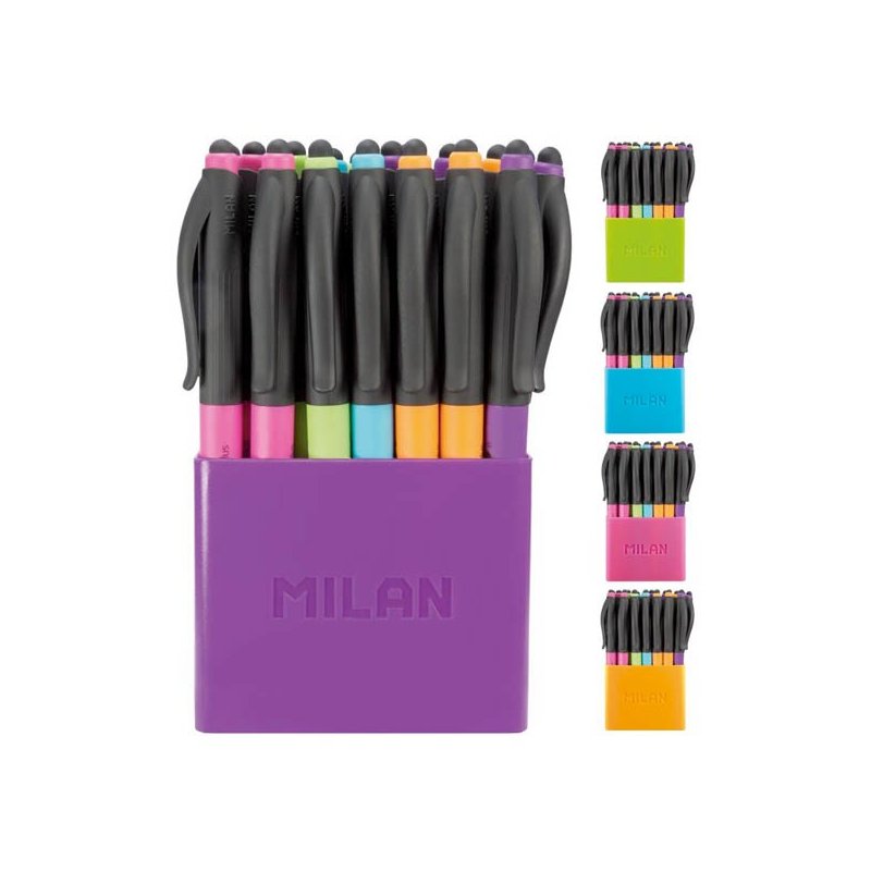 Bolígrafo P1 touch Colours con puntero para pantallas táctiles Stylus, con el cuerpo del mismo color que la tinta (naranja, lila, rosa, azul claro y verde claro). Longitud de escritura aproximada: 1.200 metros. Punta 1 mm.