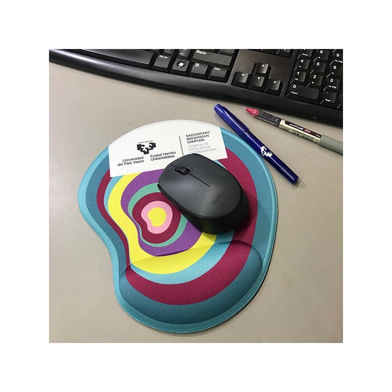 Sagu azpiko tapiz ergonomikoak eskumuturra ipintzeko leku erosoa du tendinitisa ekiditzeko. Sagua erraz labantzeko azalerarekin.