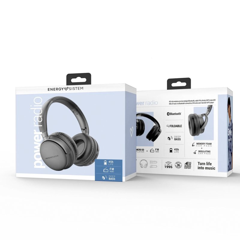 Bluetooth entzungailuak, FM irrati integratua eta MP3 Micro SD erreproduzitzailea dutenak, zure irratiez eta abestiez gozatzeko, smartphonearen beharrik gabe. Kuxin biskoelastikoak, larru proteikoa eta 45 orduko autonomia. Edukia: Graphite Studio Plus Headphones C motako USB kablea 3'5 mm-ko jack-eko audio-kable txikia Gida azkarra