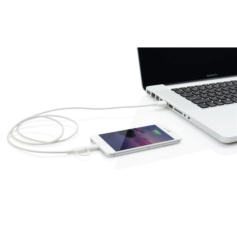 MFi lizentziarekin kargatzeko eta sinkronizatzeko kablea (iPhone eta iPad-en ingelesezko siglak). MFI lizentzia duen Lightning konektorea eta beste gailu batzuk kargatu eta sinkronizatzeko mikro USB konektorea ditu. Luzera: metro bat