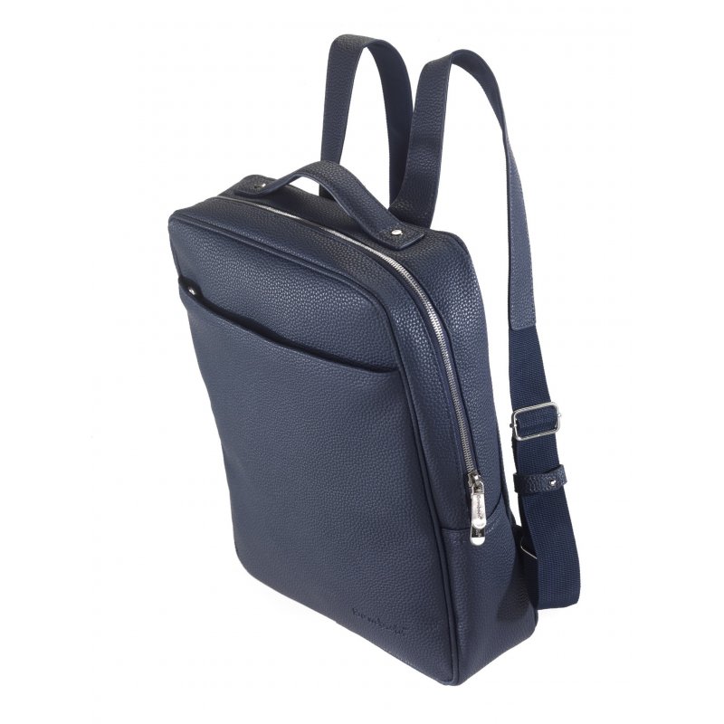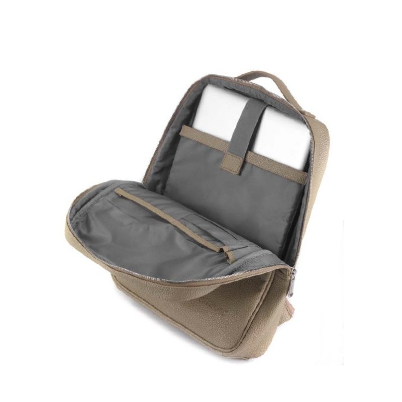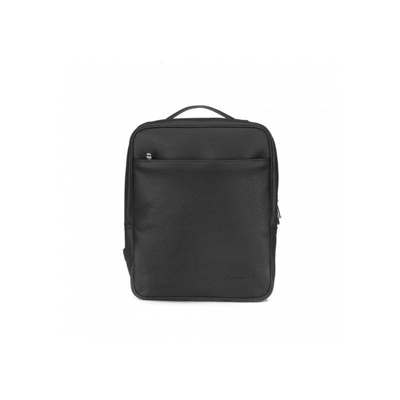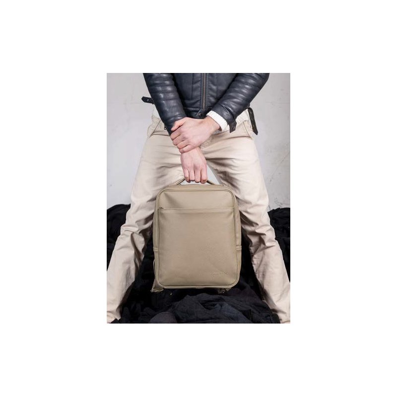 A modern and practical backpack for everyday use, fits our 15" zip case. Definitely goes well with any outfit in any occasions like work, travel, school and so on. It has two front pockets with snap closure, a black cotton handle and adjustable shoulder straps. Closed with a flap and a snap closure. B