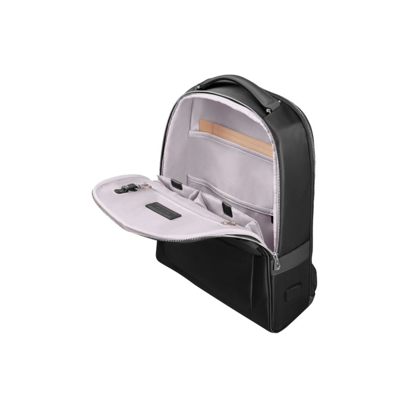 Ordenagailurako motxila klasiko bat, ehun birziklatua eta plastikozko botilekin egindako uhalak erabiltzen dituena. Goiko poltsiko bikoitza kremailerarekin, osagarriak gordetzeko. Kremaileradun aurrealdeko poltsikoa eta giltzatako klipa. Alboetan bi poltsiko, konpresio-uhalak dituzten ur-botilentzat. Atzeko konpartimentu barrubiguna, eramangarrirako kremailera bikoitzekoa (15"-rainoko eramangarri