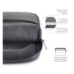 Zorroa 360º-ko babesarekin, eta barrubiguna alboetan. Euste-sistema bat du, eramangarria zorroaren barruan mugi ez dadin. Barrualdea, akabera ez-leunekoa, segurtasun handienerako.